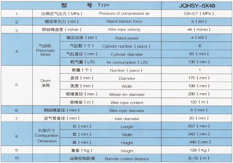 JQHSY-5X48 系列 遠(yuǎn)程控制氣動絞車