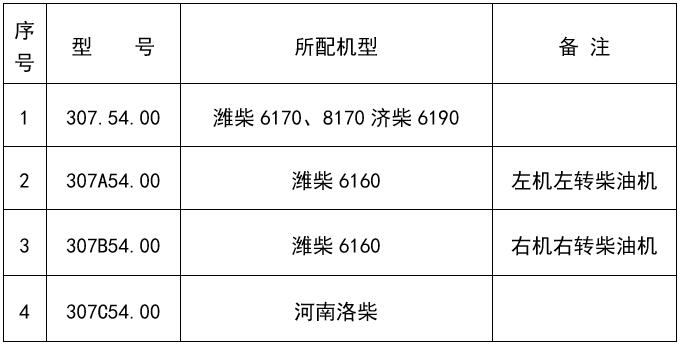 用戶在選型訂購時,須參照下表,標明所需電動預供油泵的具體型號,單位為臺。